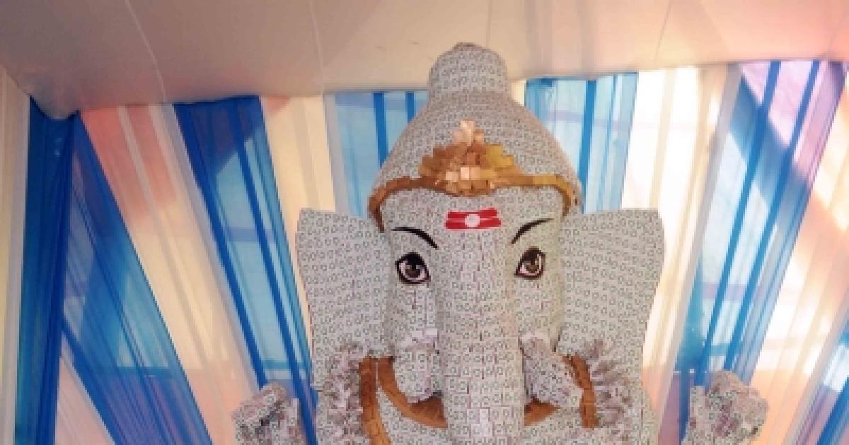 A 15-feet idol made of biodegradable recycled matchboxes by artist Kandi Kuppa Suryprakash has become a huge attraction this year for its ingenuity.