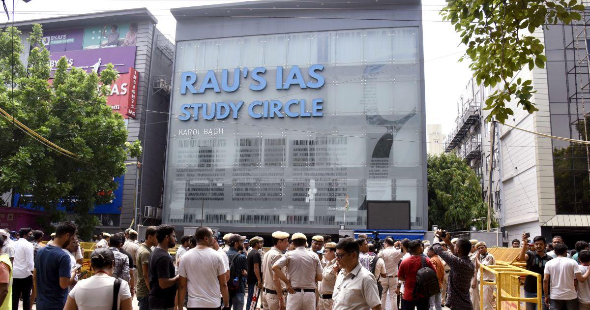 While Lok Sabha members across party lines demanded an inquiry, hundreds of students continued their protests near Rau's IAS Study Circle in the west Delhi locality where the horror unfolded Saturday night, killing the three students trapped in the basement illegally used as a library as floodwaters rose outside.