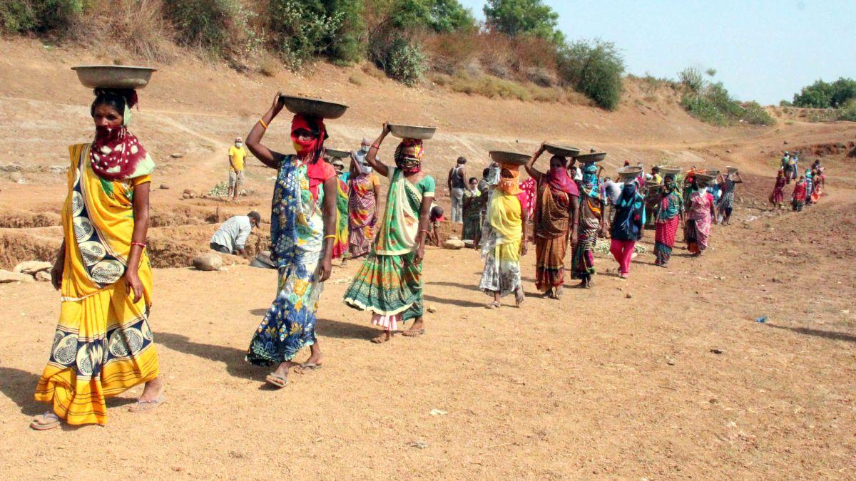IMAGE: Migrant's labours working under MGNREGA scheme in Gujrat's Navsari. Photograph: ANI Photo