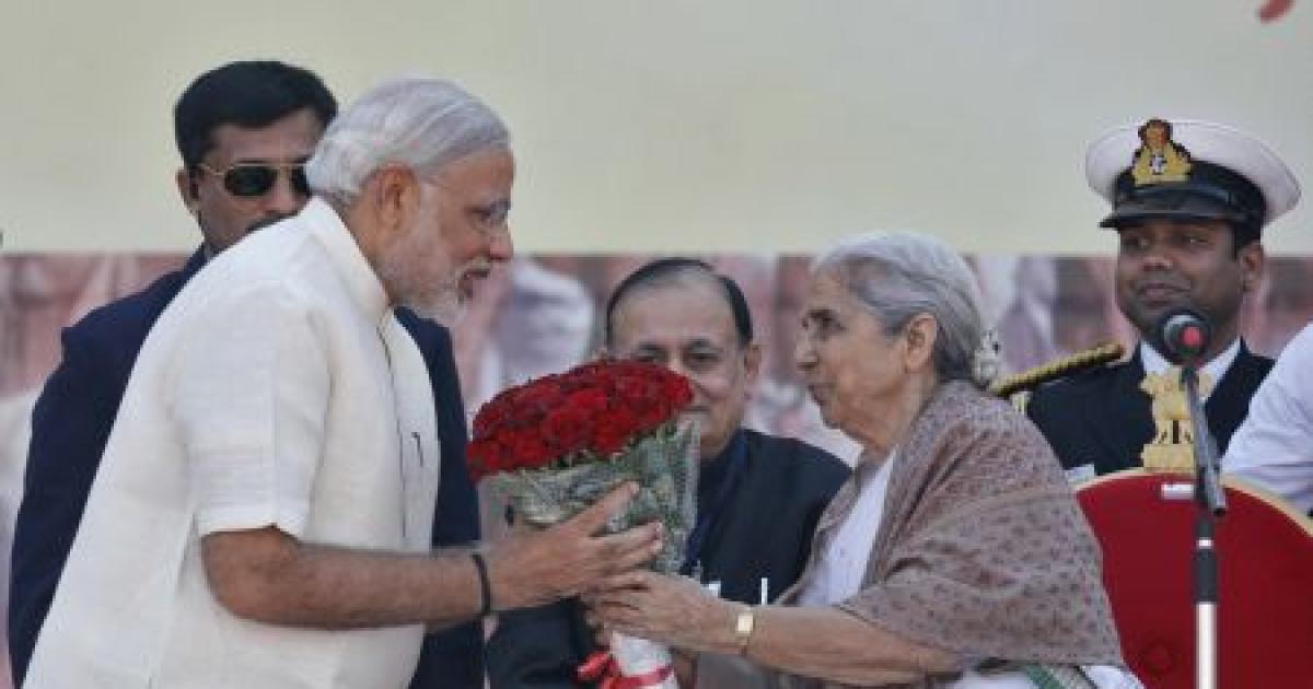 Image: Gujarat Chief Minister Narendra Modi with Governor Kamla Beniwal at a function in Ahmedabad