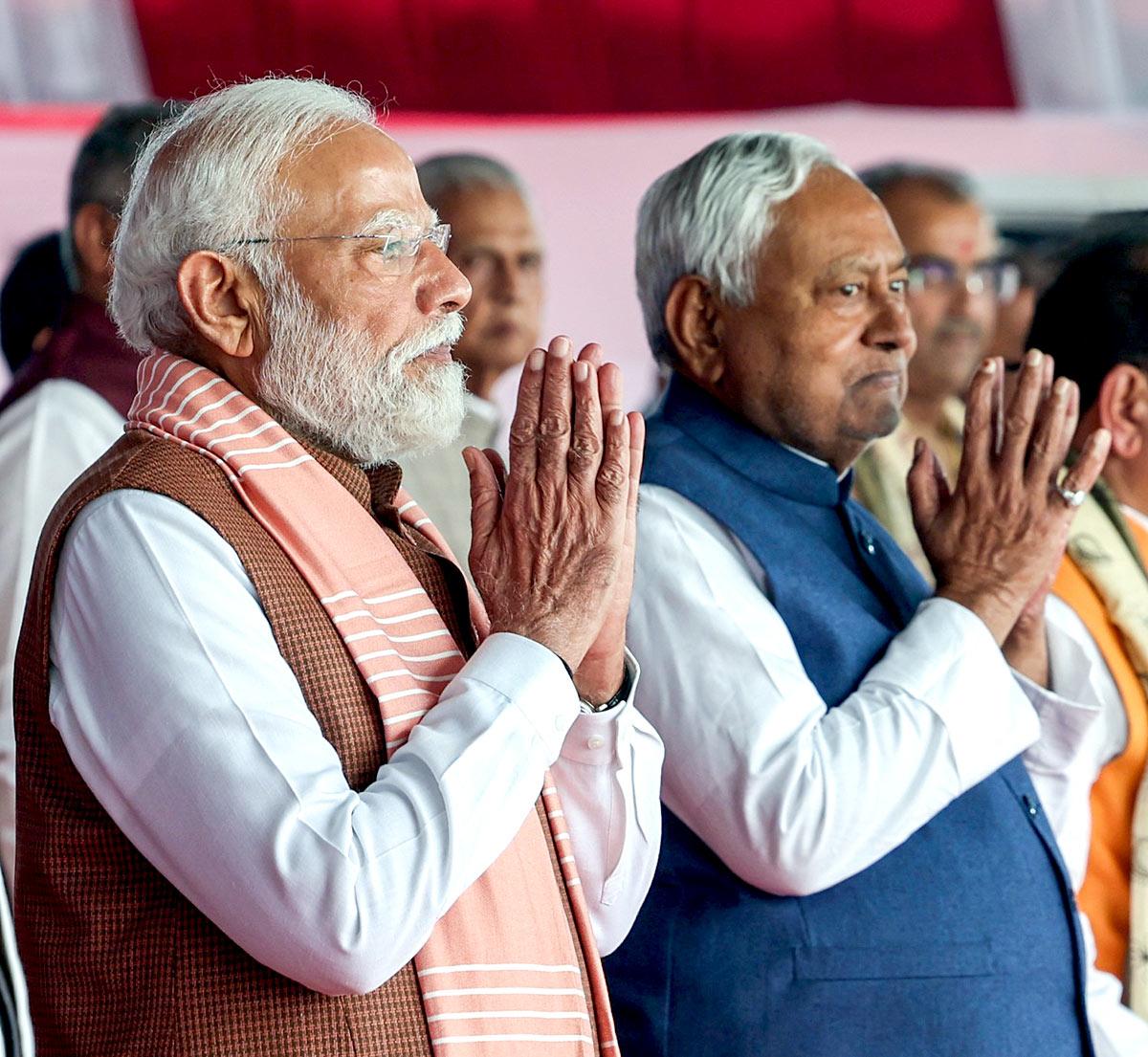 IMAGE: Narendra Modi with Nitish Kumar. Photograph: @Jduonline/X