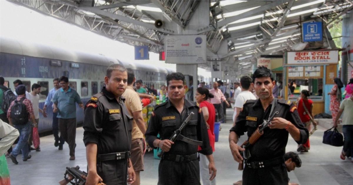 IMAGE: Security personnel guard at the railway station in Gurgaon as they are being deployed at various sensitive places in the view of Jat agitation. Photoghraph: PTI