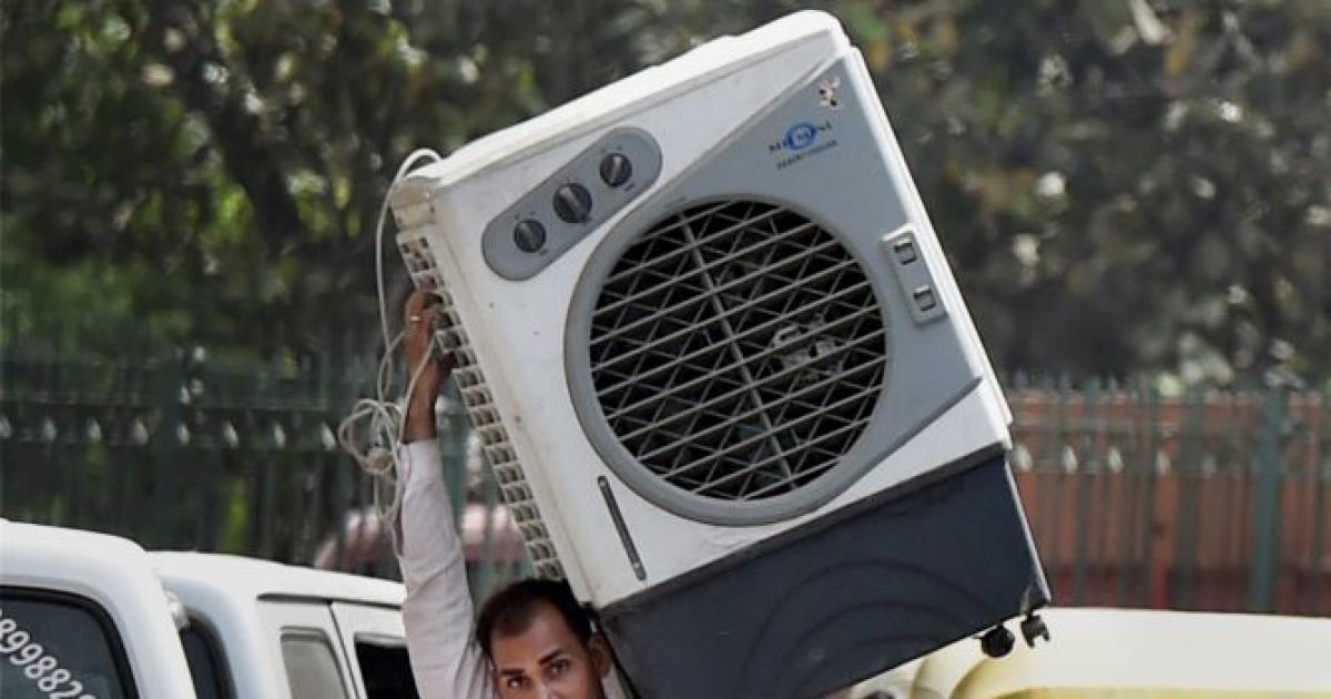 IMAGE: A man carries cooler as teperature soars in New Delhi. Photograph: Manvender Vashist/PTI Photo