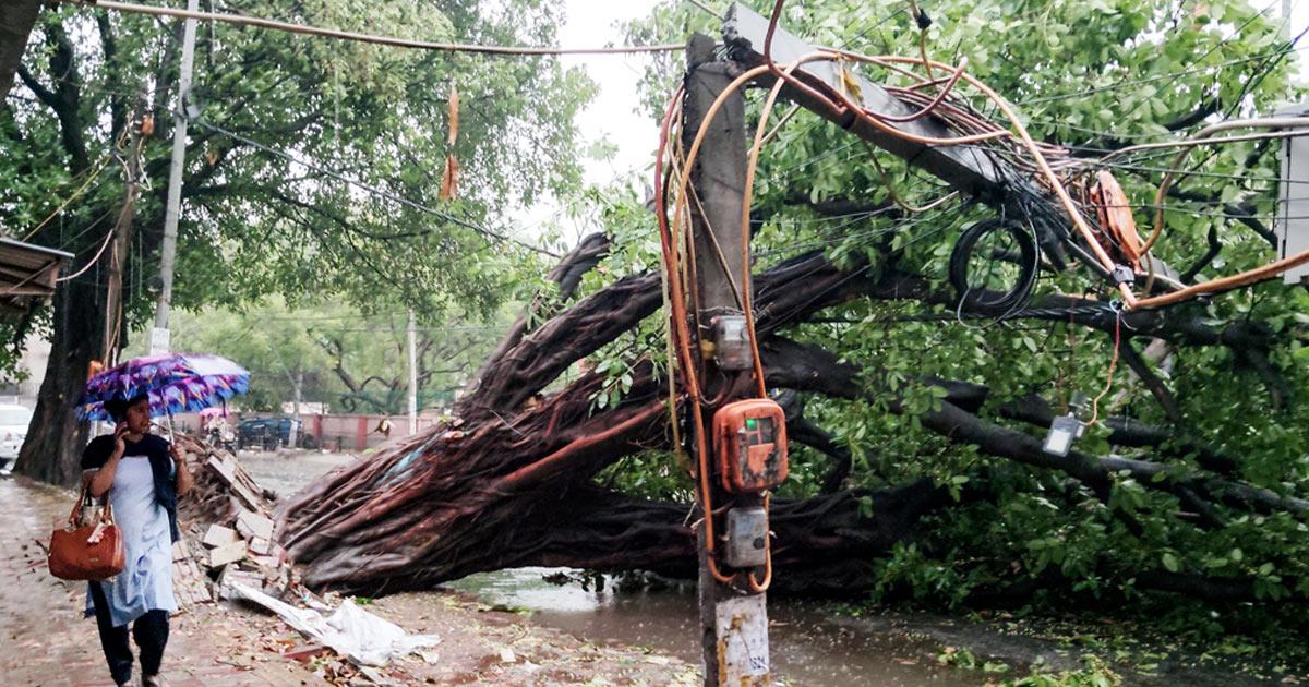 In Delhi's Najafgarh, three children and a woman died after a tree fell on their house following strong gusty winds that accompanied rains in the city, causing it to collapse. The woman's husband was the only survivor of the incident.