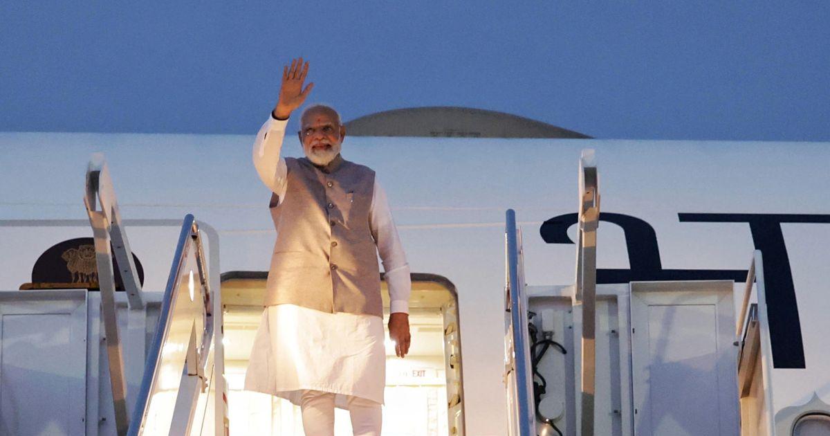 IMAGE: Prime Minister Narendra Modi emplanes for Cairo, Egypt from Joint Base Andrews Airport, US on Friday, after concluding his maiden State Visit to the United States. Photograph: ANI Photo