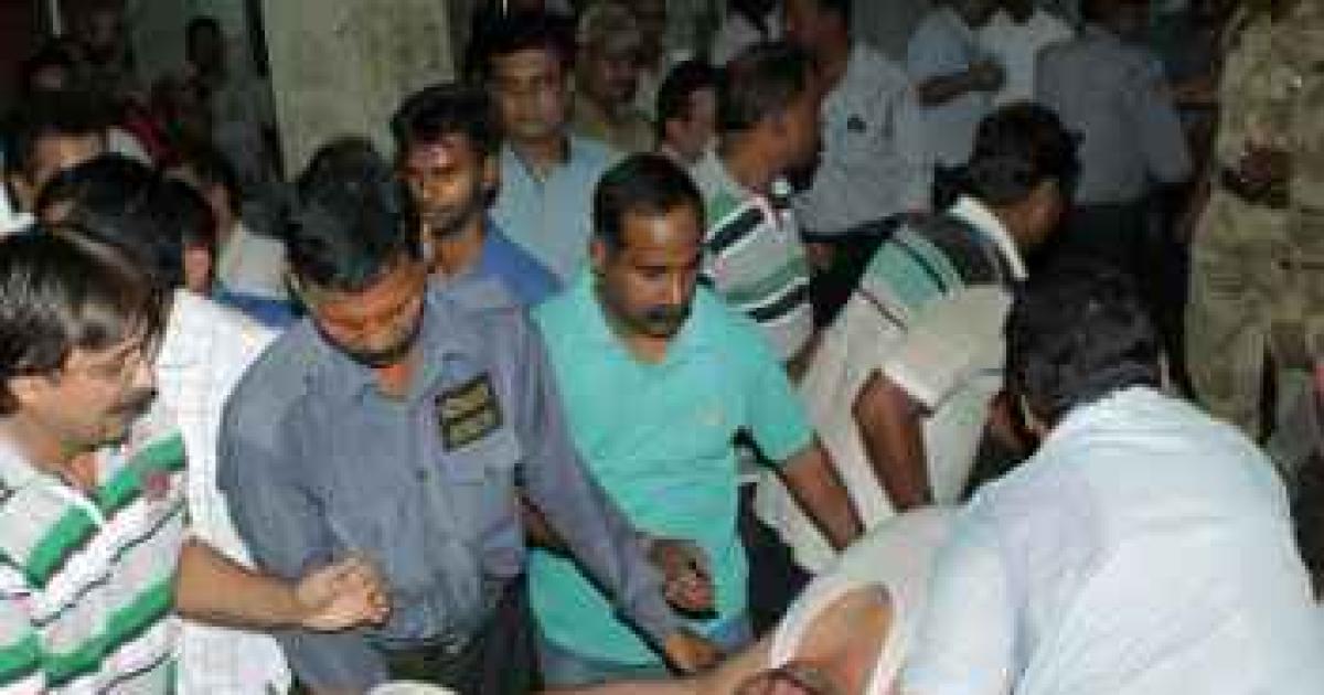 Image: An injured employee being shifted to a hospital following a gas leakage at Bhilai Steel Plant