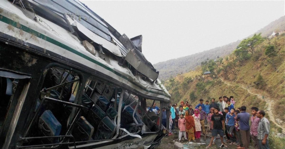 Police said six deceased have been identified while identity of six others, including an infant are yet to be ascertained. The accident reportedly took place when the driver lost control over the vehicle while trying to give way to another bus on the road which had been dug up for laying the cable, they said.