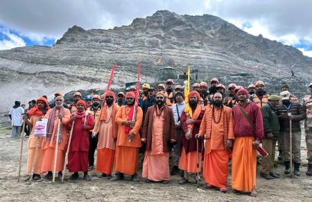 As part of the day's religious observances, devotees participated in a bhoomi pujan, Navgrah Pujan (prayers to the nine celestial deities), and the symbolic hoisting of the religious flag, signifying divine blessings and the readiness for the coming stages of the pilgrimage.