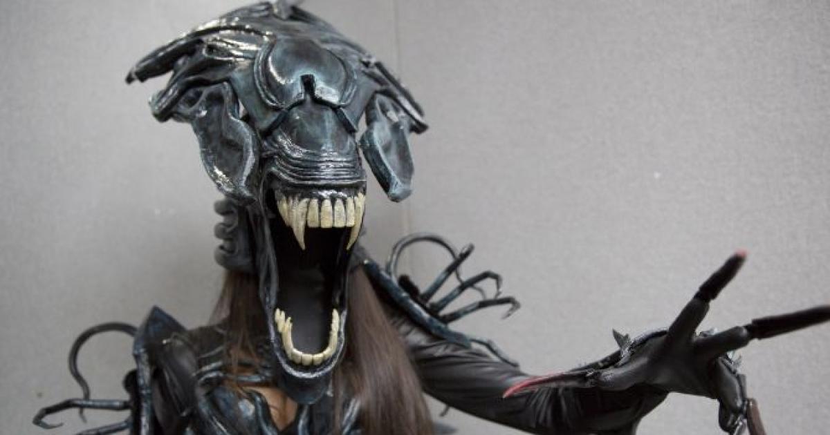 A cosplay fan poses in character as an alien at the London Film and Comic-Con in London, Britain. Photograph: Neil Hall/Reuters