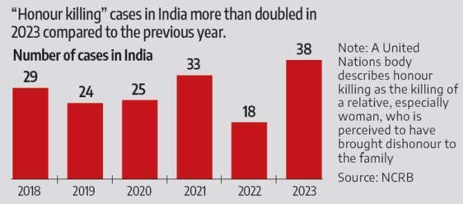 Official data corroborates the trend as honour killing cases in India rose to 38 in 2023 -- the highest level in the past six years.