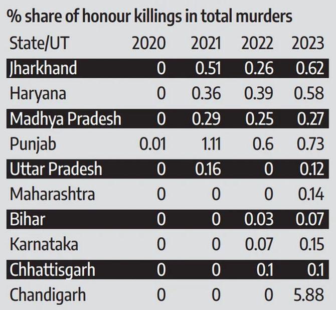 Across the top 10 states and Union Territories, the share of honour killings in total murders remained minuscule
