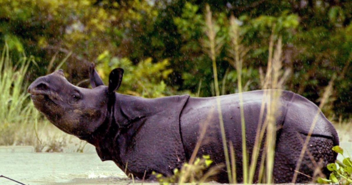 Image: A one-horned Indian rhinoceros walks in the floodwaters of the KNP. The park, a World heritage Site, is the world largest refuge to the great Indian one-horned rhinoceros. Photograph: Kamal Kishore/reuters