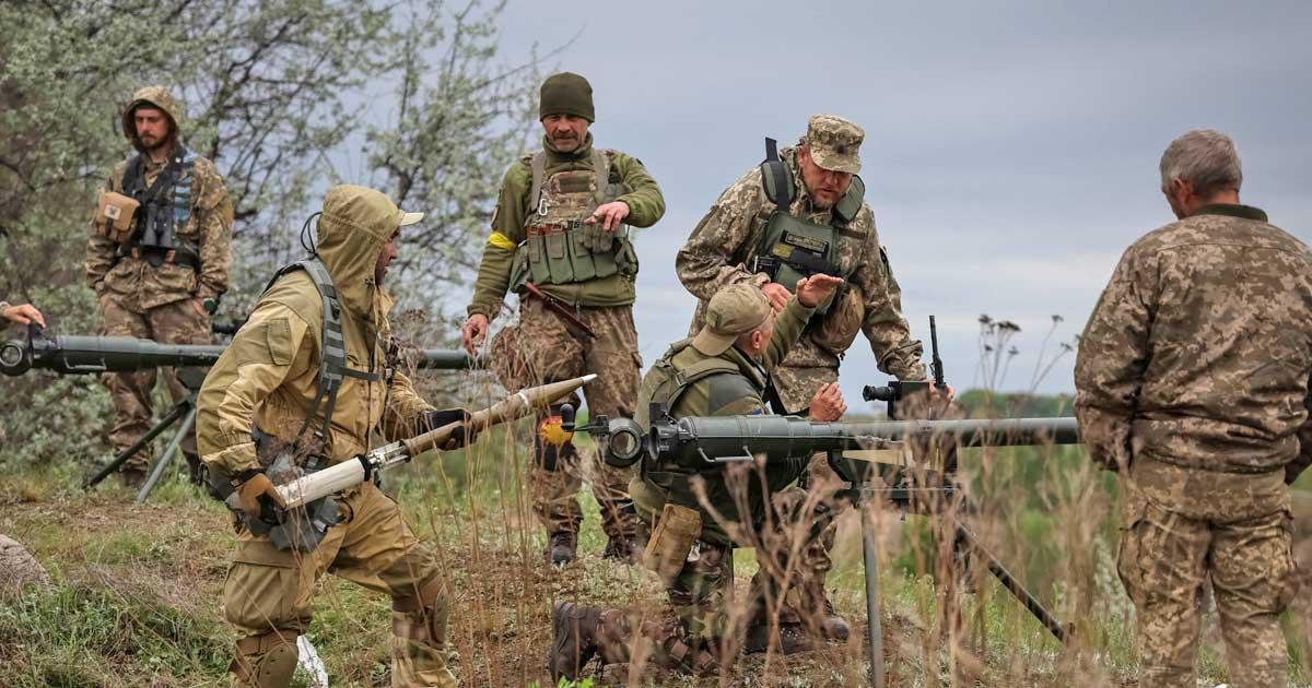 IMAGE: Members of the Ukrainian Territorial Defence Forces are taught how to use an anti-tank grenade launcher during a training exercise in the Dnipropetrovsk region. Photograph: Gleb Garanich/Reuters