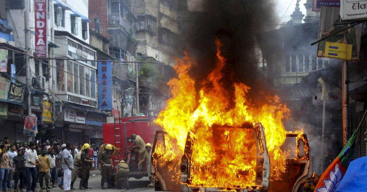 Similar scenes were witnessed in Howrah town, Kolkata's Lalbazar and MG Road areas where protesters engaged in a scuffle with the police. In Lalbazar, a police vehicle was set on fire.