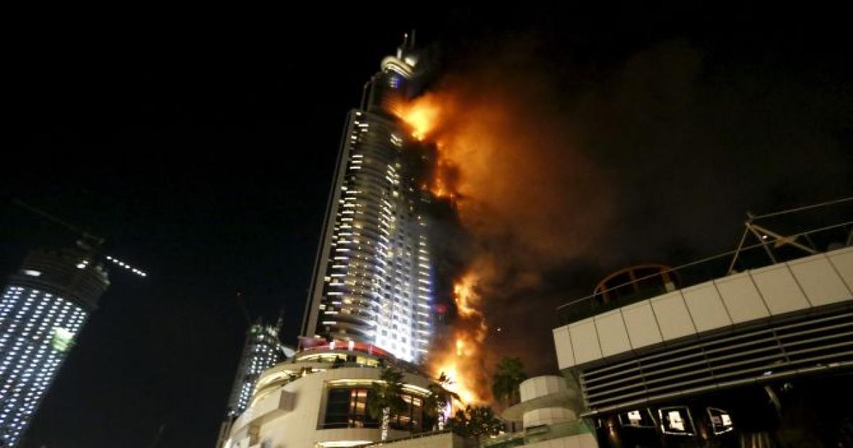 Witnesses said large tongues of flames shooting skywards enveloped the luxury hotel, which lies across a plaza from the Burj Khalifa.