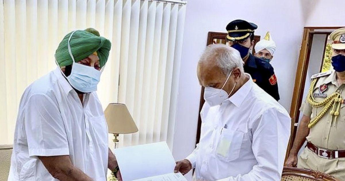 Singh was accompanied by his wife and MP Preneet Kaur and son Raninder Singh when he submitted his resignation to Governor Banwarilal Purohit.