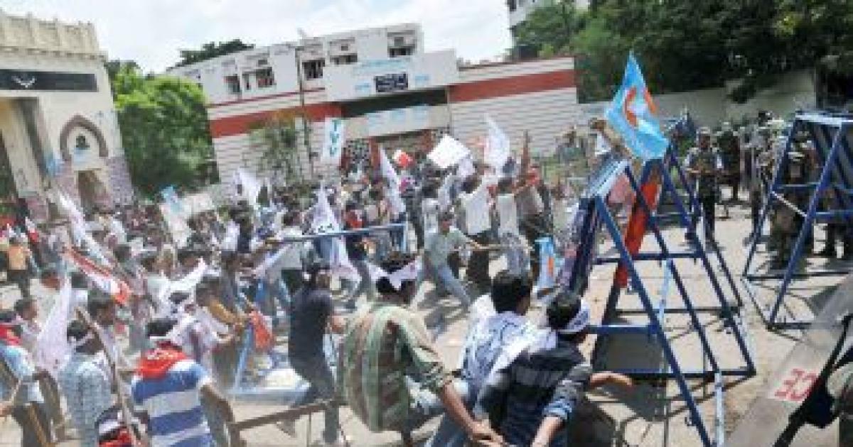 Image: Hundreds of Osmania University students clash with the police ahead of the Telangana march on Sunday