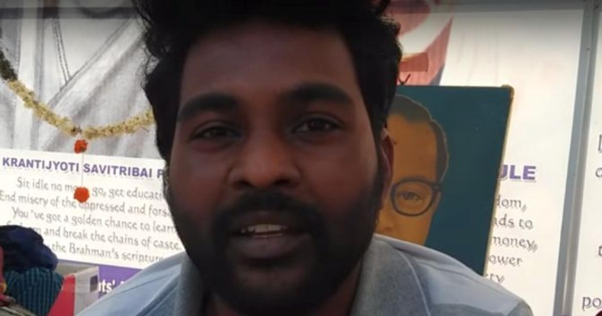 In the video, appeared to have been shot at a tent (named as 'Dalit ghetto') near the Shopcom area in HCU where Vemula and his other colleagues had stayed following their suspension, Vemula talked about himself and his background.