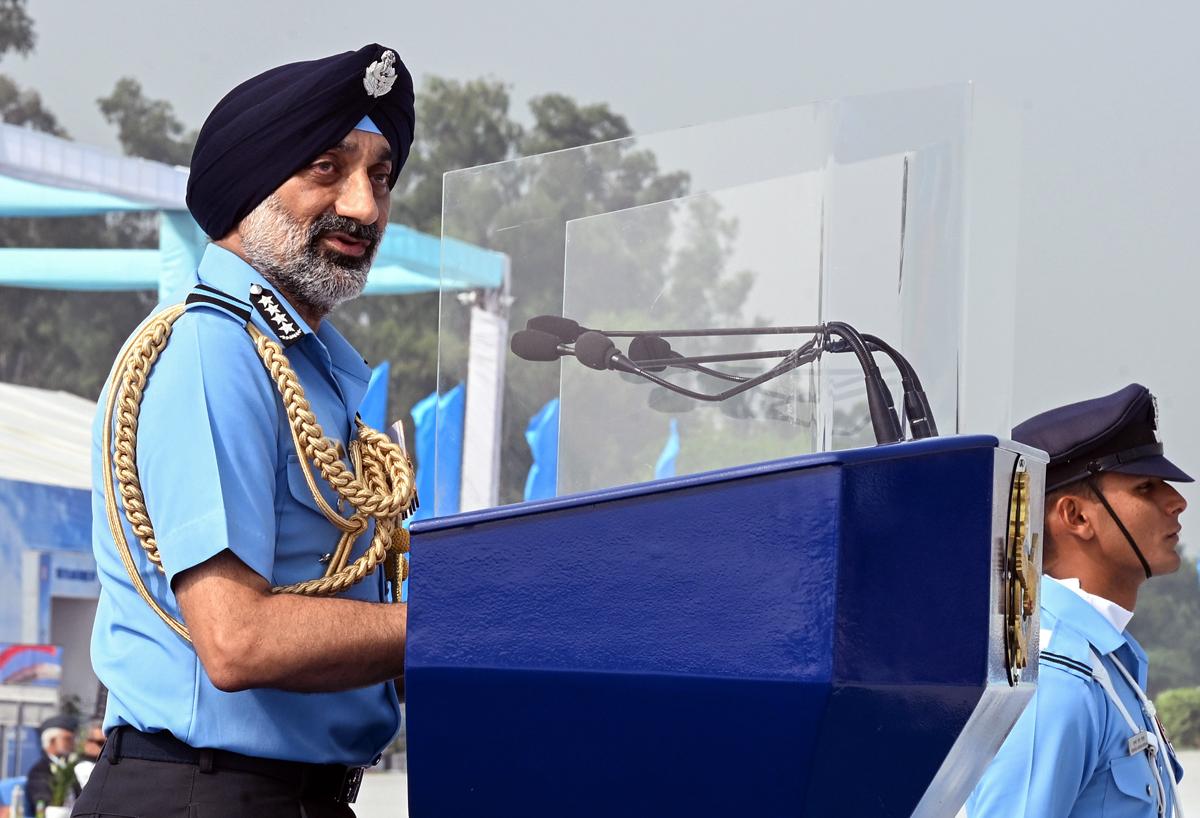 IMAGE: Air Chief Marshal Amar Preet Singh speaks on the occasion. Photograph: Jitender Gupta/ANI Photo