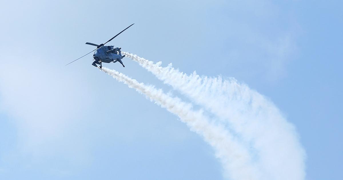 IMAGE: IAF aircraft's breathtaking aerial display, here, below and below. All Photographs: Press Information Bureau