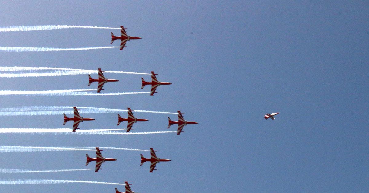 The IAF's Surya Kirans put up a stunning display of aerobatics.