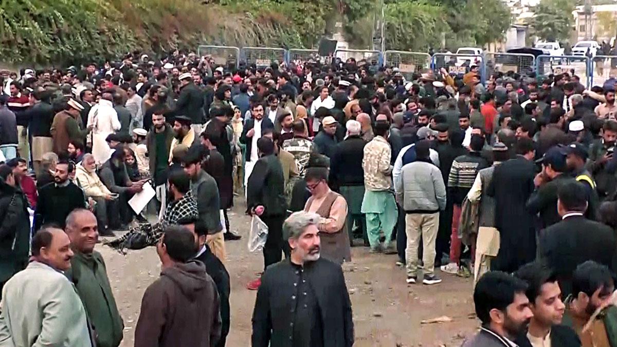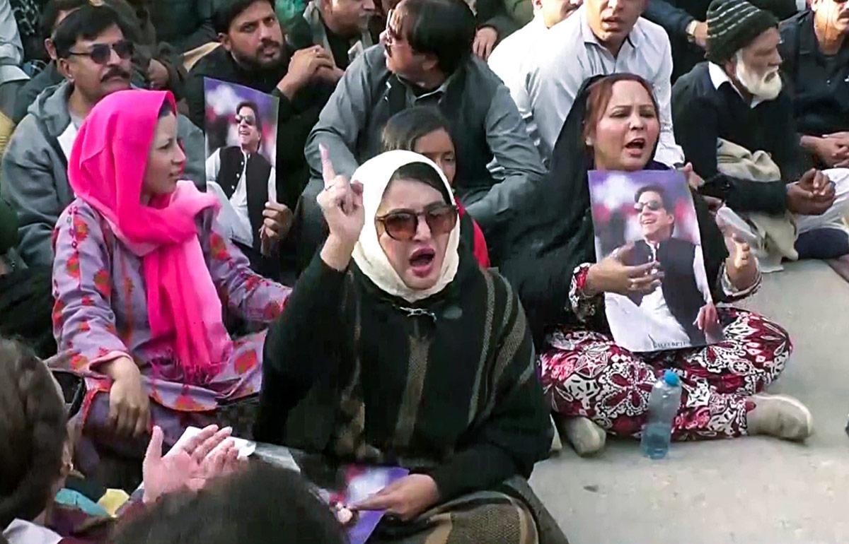 IMAGE: Pakistan Tehreek-e-Insaf supporters join the protest outside Adiala jail.