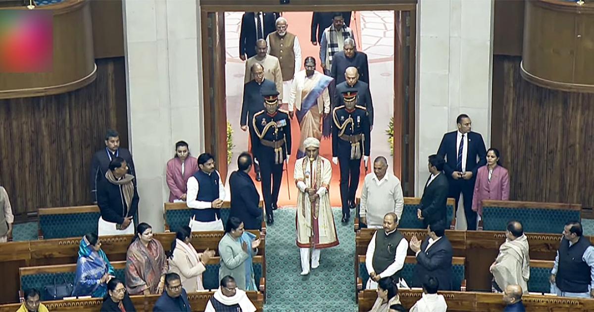 Slogans of 'Bharat Mata Ki Jai', 'Jai Shri Ram', 'Jai Siya Ram' and 'Jai Jagannath' rent the air as President Murmu took her seat in the chamber.