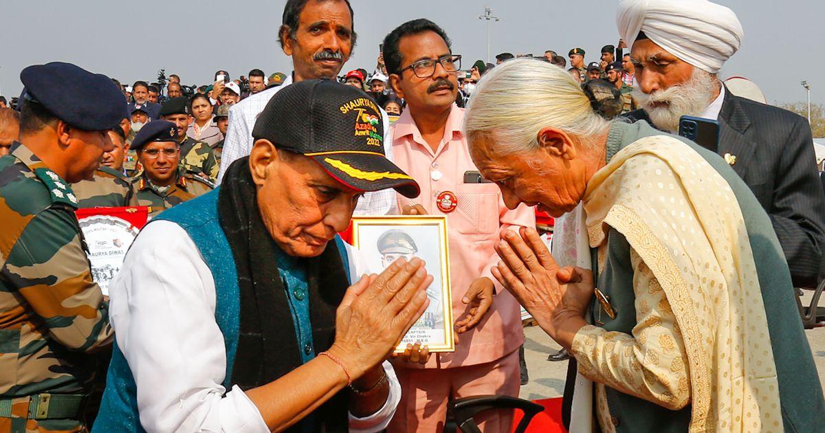 Usha Sharma, the octogenarian daughter of Brigadier Rajinder Singh and family members of other martyrs also attended the event.