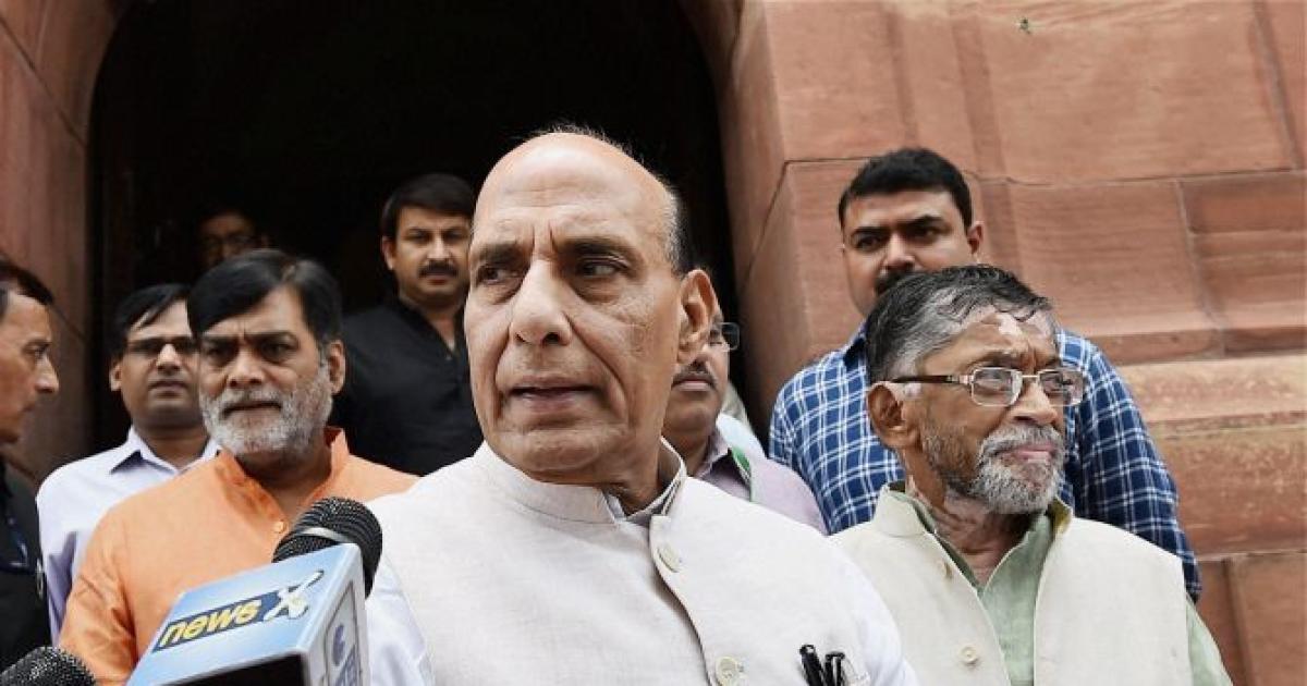 Image: Home Minister Rajnath Singh at Parliament house during the monsoon session in New Delhi. Photograph: Kamal Singh/PTI
