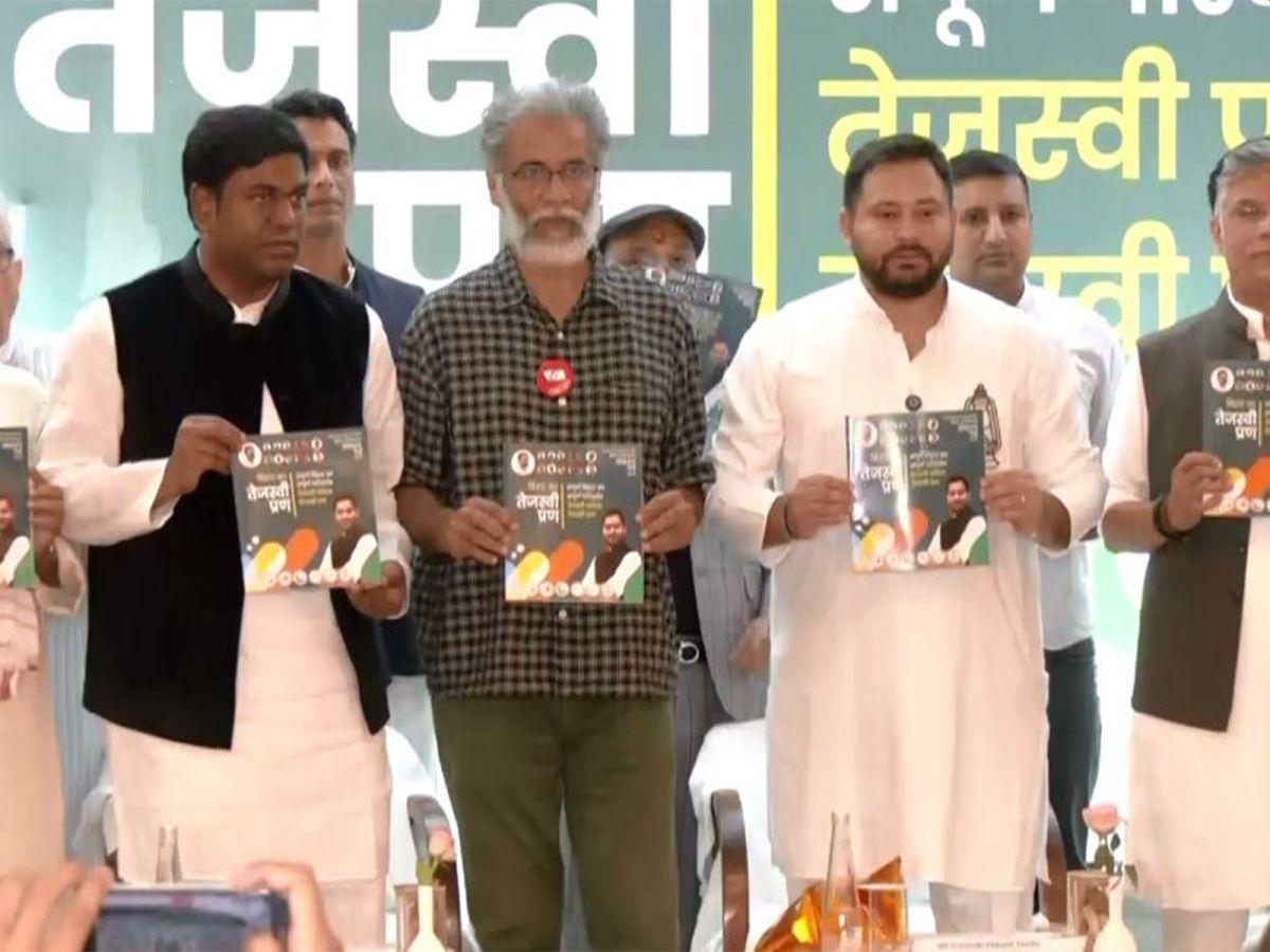 The 32-page-long 'Bihar ka Tejashwi Pran' (Tejashwi's resolve) was released at a crowded press conference where the 35-year-old Rashtriya Janata Dal leader was joined by alliance partners.