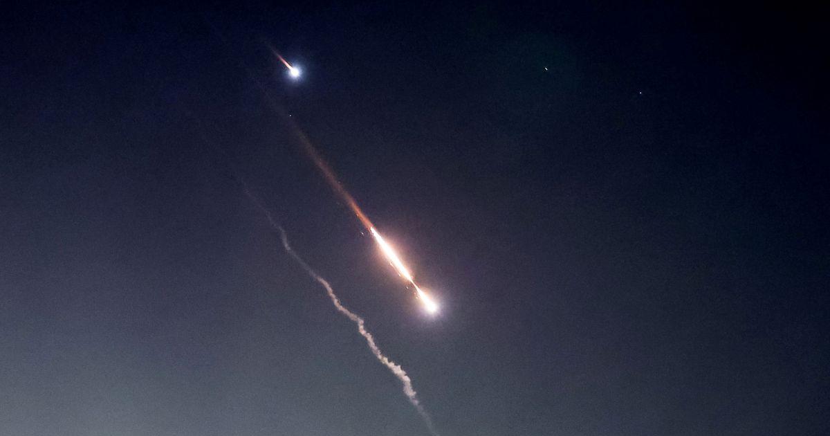 IMAGE: Objects are seen in the sky above Jerusalem after Iran launched drones and missiles towards Israel, on April 14, 2024. Photograph: Ronen Zvulun/ Reuters