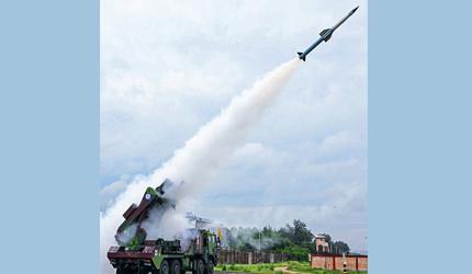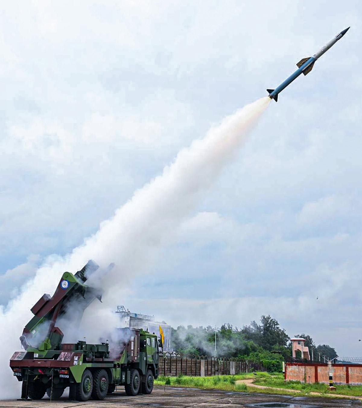 IMAGE: DRDO successfully conducts the maiden flight tests of the Integrated Air Defence Weapon System off the Odisha coast. Photograph: @rajnathsingh X/ANI Photo