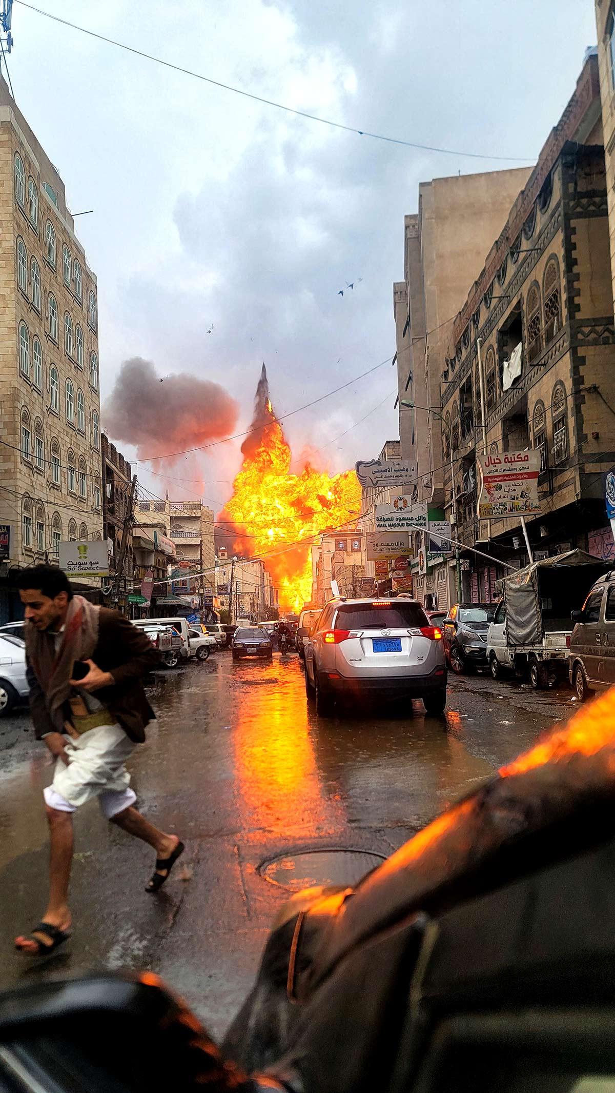 IMAGE: A fire ball rises from the site of an Israeli air strike in Sanaa, Yemen. Photograph: Stringer/Reuters