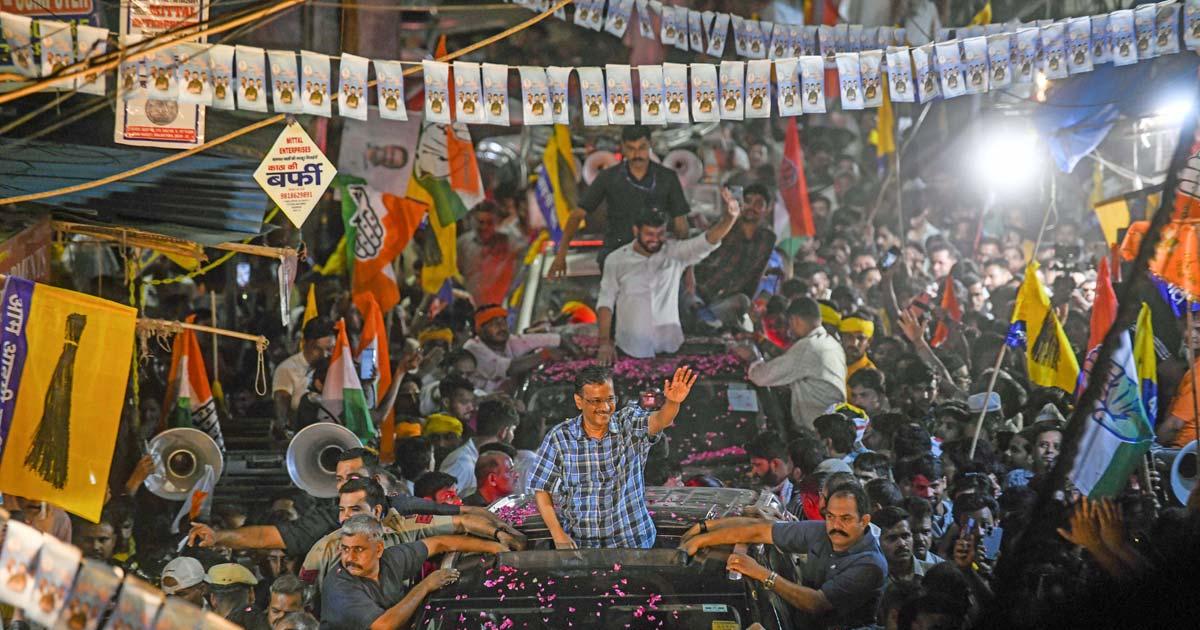 Aam Aadmi Party national Convenor Arvind Kejriwal campaigned for Kanhaiya Kumar, the Congress candidate from the North-East Delhi constituency, at a roadshow in Bhajanpura on Tuesday, May 21, 2024.