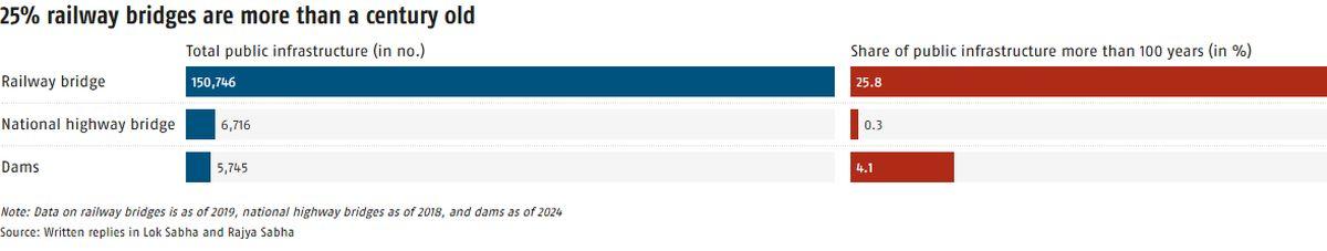 India has around 163,207 public infrastructure assets -- railway bridges, national highway bridges, and dams -- of which 30.2 per cent are over a century old.
