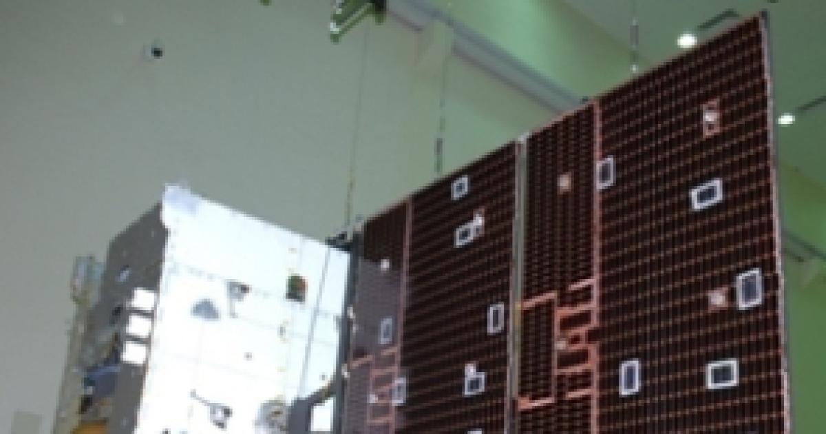 Image: GSAT - 7 with solar panel deployed ' Photograph Courtesy https://www.isro.org/
