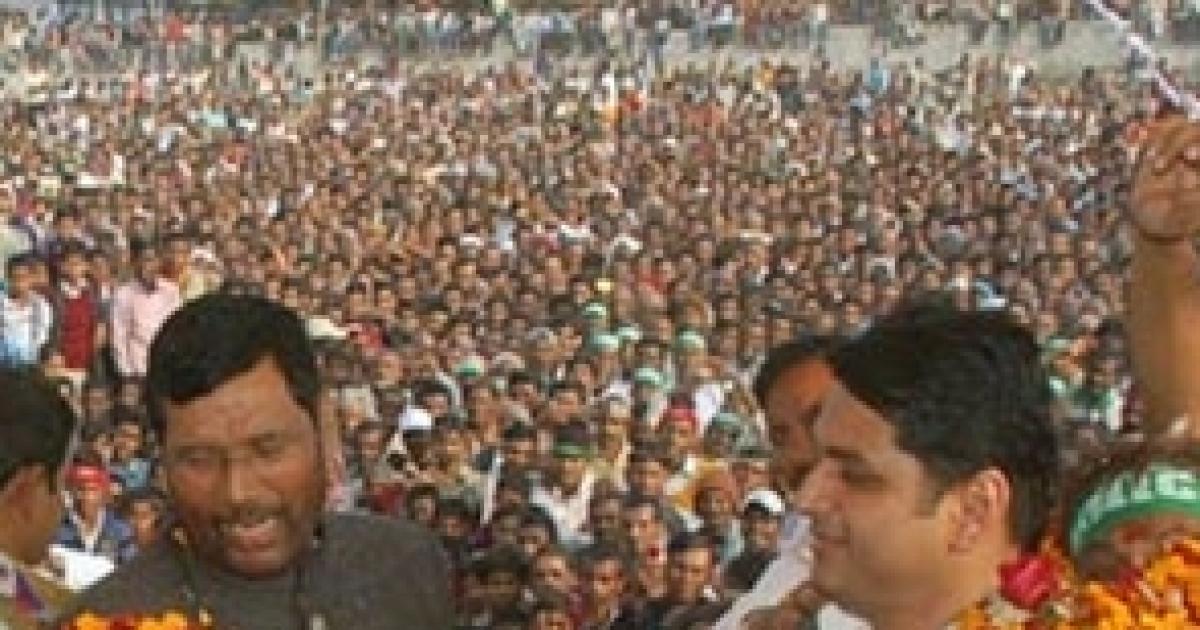 Image: LJP chief Ramvilas Paswan (left) at a political rally