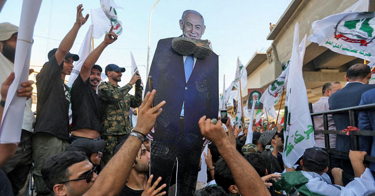 As the Iran-Israel conflict takes dangerous dimensions, support for Tehran comes from next door as Iraqi Shi'ite Muslims protest Jerusalem's attacks in Baghdad.