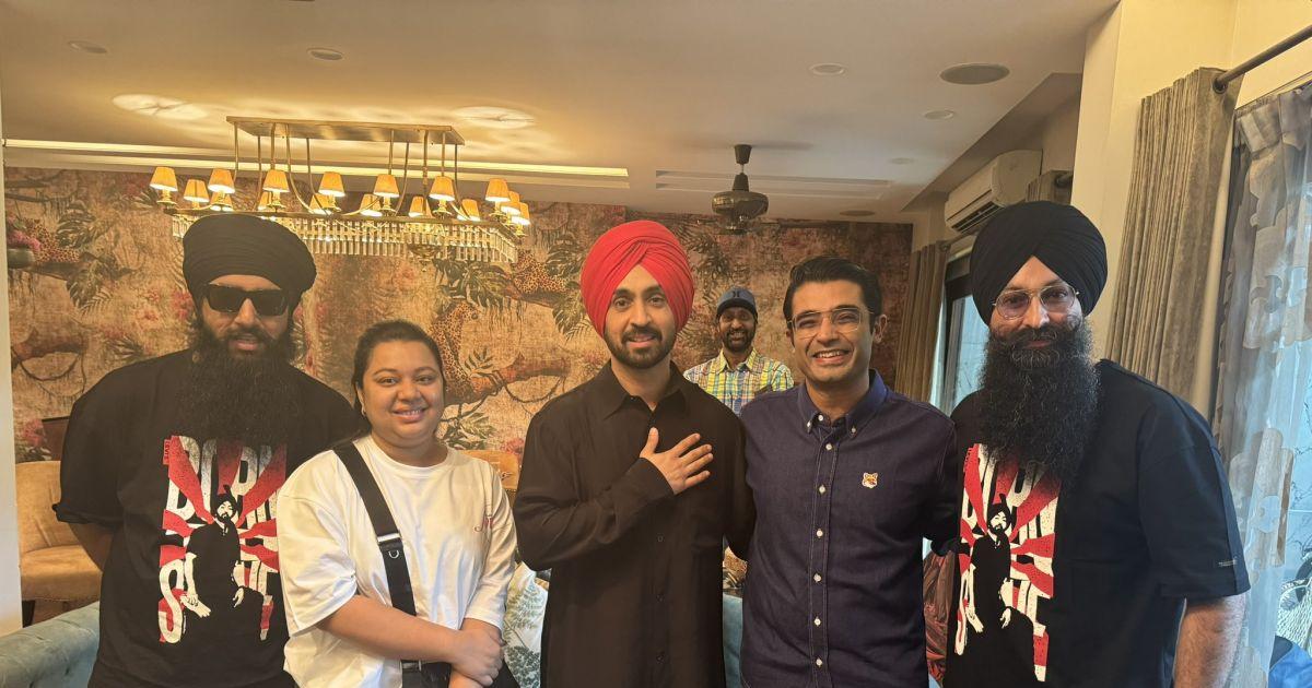 The music sensation, dressed in an all-black outfit with a red turban, was seen posing with Shergill in pictures shared by his team.