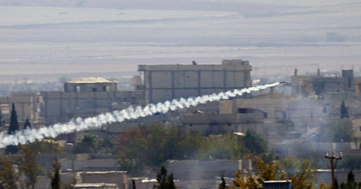 Image: A rocket believed to have been launched by Islamic State forces flies from the east to the west side of the Syrian town of Kobani during fighting. Photographs: Yannis Behrakis/Reuters