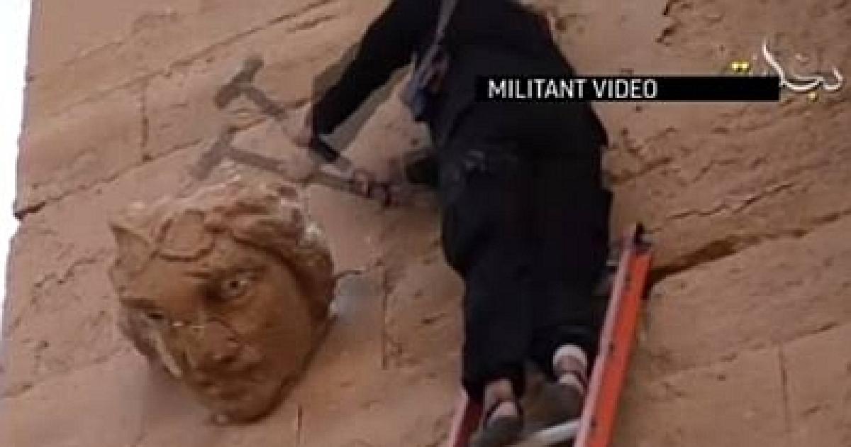 The video that was released on Friday showed a terrorist on a ladder using a sledgehammer to bang repeatedly on the back of one of the carved faces until it crashed to the ground and broke into pieces.
