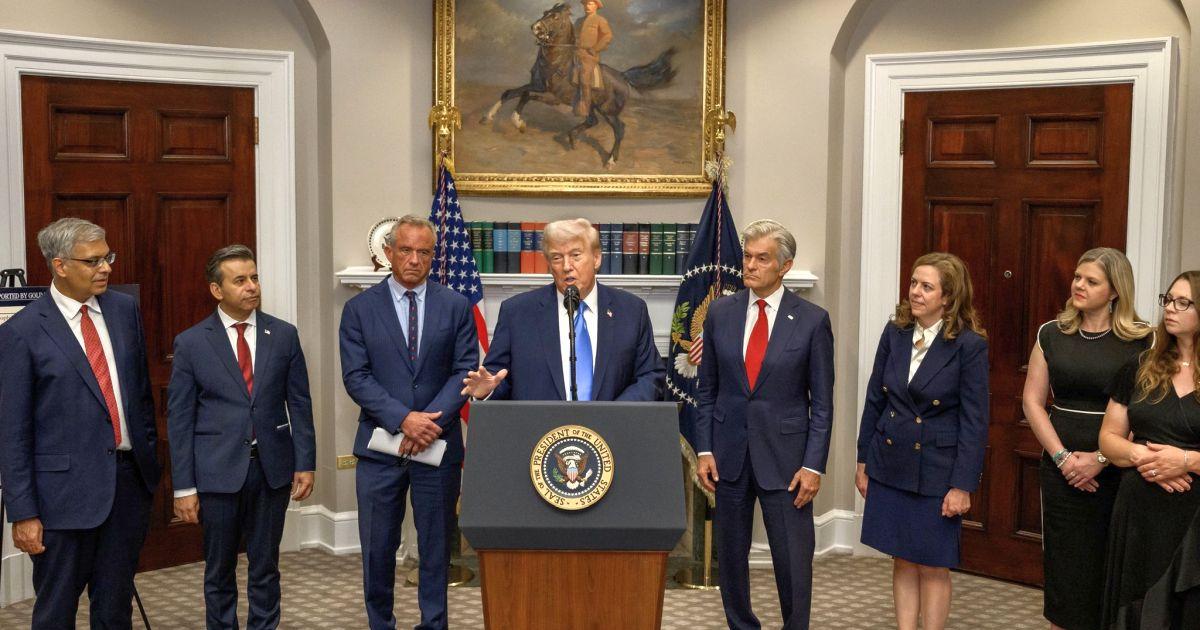Trump was joined at the announcement by US Health and Human Services Secretary Robert F. Kennedy Jr., FDA Commissioner Marty Makary, NIH Director Jay Bhattacharya, and CMS Administrator Mehmet Oz.