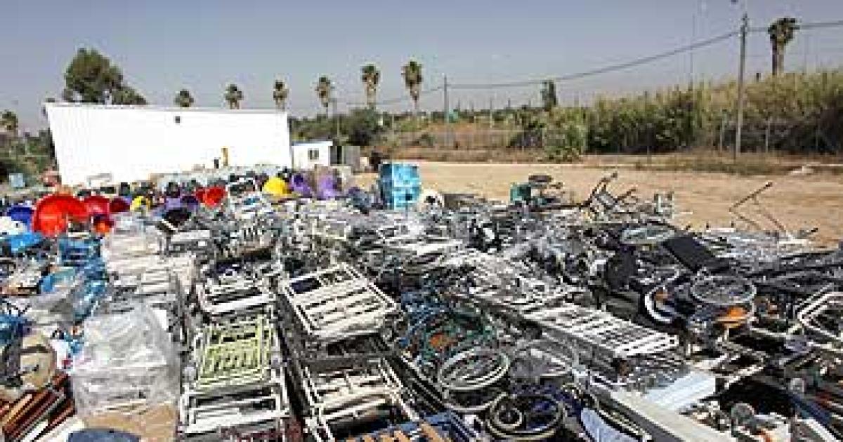 Image: Wheelchairs and other items, that were aboard Gaza-bound ships which were intercepted by Israeli forces, are seen at a military storage facility near Tel Aviv, on June 7.