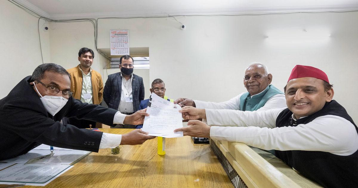 IMAGE: Another view of Akhilesh Yadav filing his nomination for the Karhal assembly constituency, which his Samajwadi Party has won since December 1993. Photograph: ANI Photo