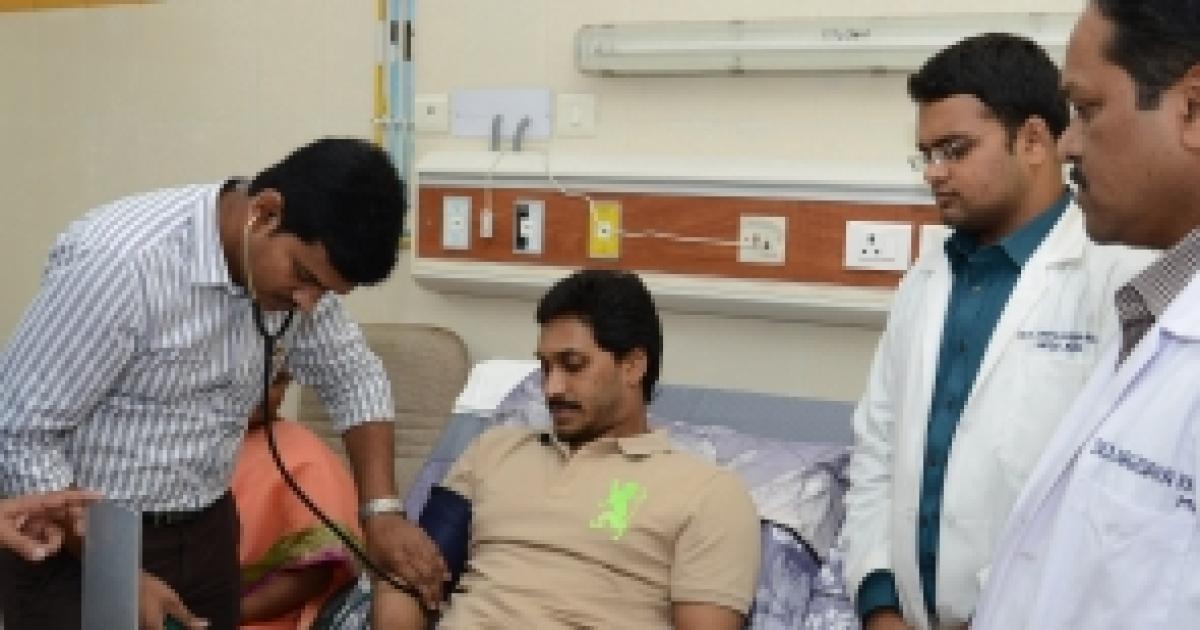 Image: Doctors examine Jagan at the Nizam's Institute of Medical Sciences in Hyderabad on Friday