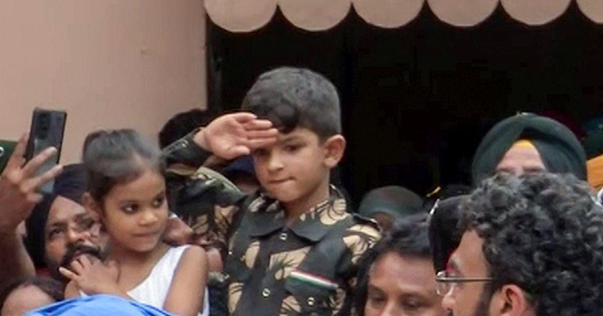 Jai Hind Papa. A stoic six-year-old Kabir dressed in army-style fatigues saluted his father one last time before Colonel Manpreet Singh, killed in the gunfight with terrorists in Kashmir valley, was cremated at his village in Punjab's Mohali district on Friday.