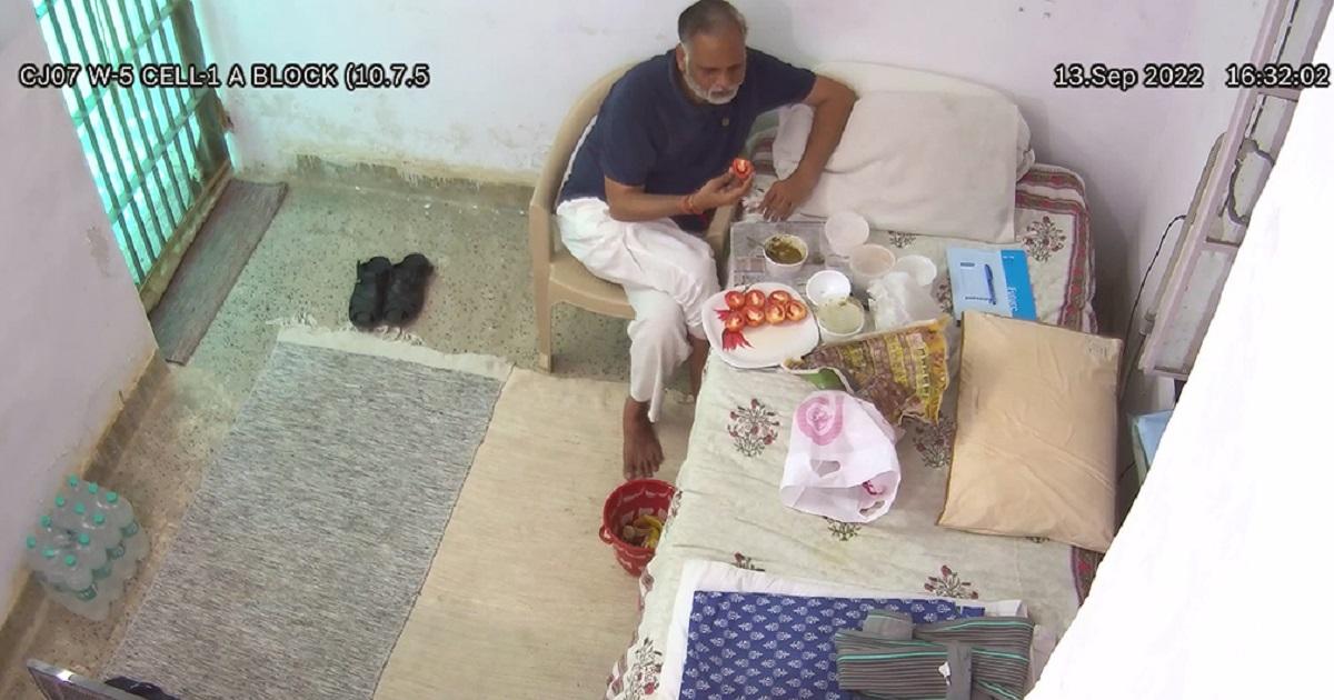 Fresh videos of the jailed minister emerged again on Wednesday where he is seen eating uncooked vegetables and fruits in his Tihar jail cell.