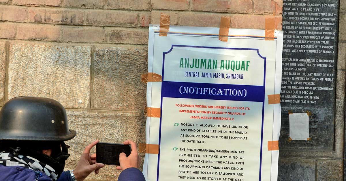 The Auquaf also disallowed eats and photography and videography inside the Jamia Masjid.