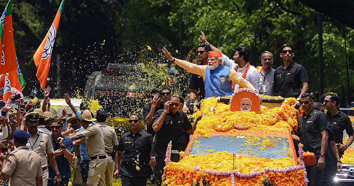 Modi's three-hour roadshow traversed through parts of south and central Bengaluru, touching about a dozen assembly segments. He waved at large crowds that gathered on both sides of the route.