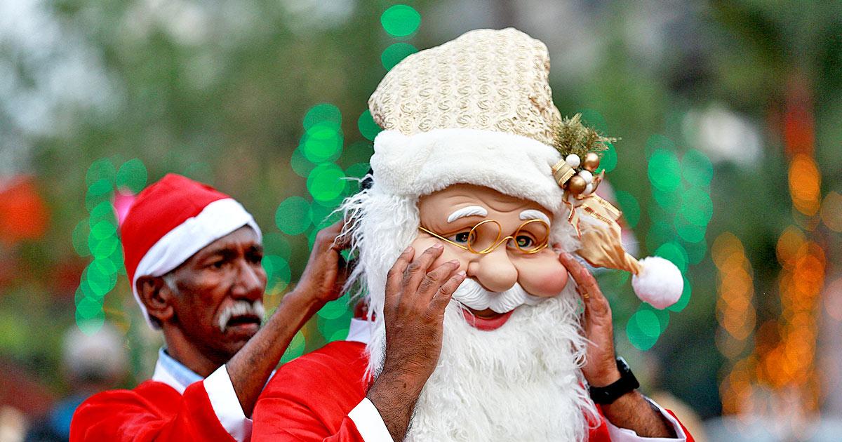IMAGE: Santa gets ready outside a church in Kochi. Photograph: Sivaram V/Reuters